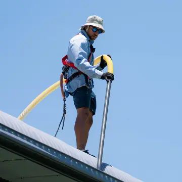All roof work uses certified anchor points, harnesses and safety equipment. No ladders propped against your gutters, no risk of damage or injury on your property. We’re a preferred contractor for Gold Coast City Council and Queensland Government, meeting strict safety and quality standards required for public sector contracts.